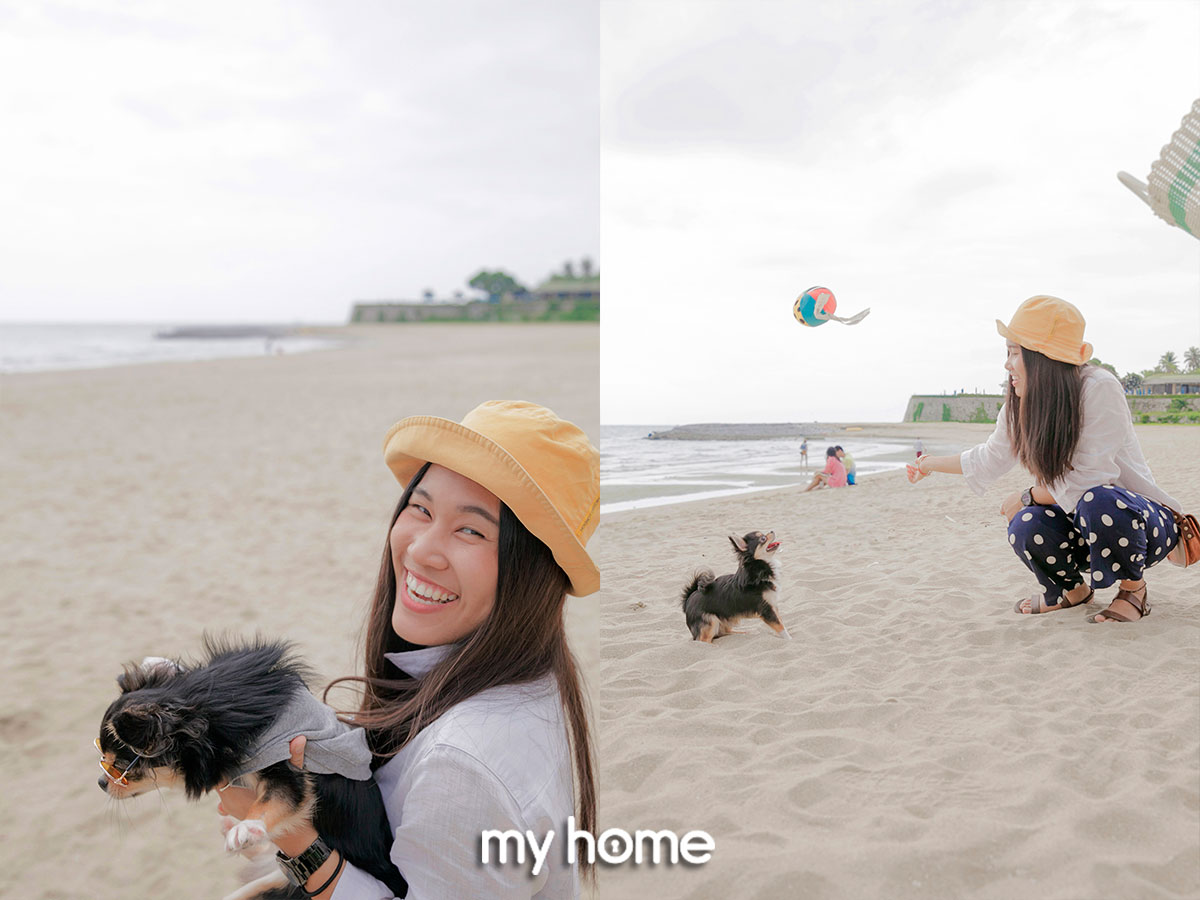 ถึงแล้วววว !!! แวะลงสำรวจหาดทรายกันสักหน่อย แต่ควรระวังสิ่งแปลกปลอมที่อยู่บริเวณหาดทราย เช่น เศษหอย ปะการัง หิน เศษขวดแก้ว กระป๋องอลูมิเนียม ก่อนปล่อยน้องลงเดินเล่น และ ถ้าหากใครไปเที่ยวในช่วงฤดูร้อนหรือช่วงอากาศร้อน ควรมีผ้าเย็นหรือเจลเก็บความเย็นติดไปด้วย เพราะอากาศบริเวณทะเลอาจจะมีไอร้อนที่ทำให้สุนัขเหนื่อยหอบและเกิดอาการ Heat Stroke ได้ค่ะ